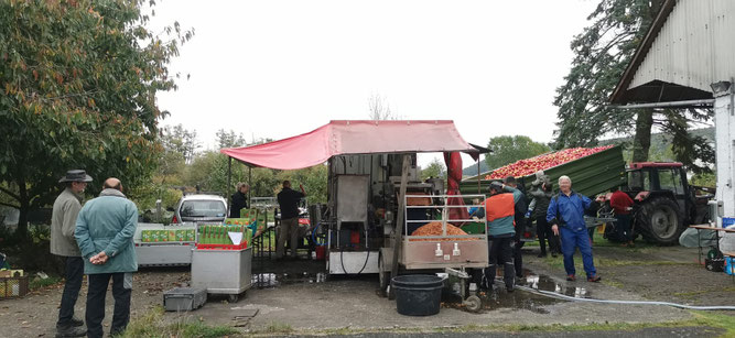 "Das war ein schönes Wochenende mit wieder mal vielen helfenden Händen und toller Verpflegung, Es sind ca. 3.500 Liter Apfelsaft geworden.