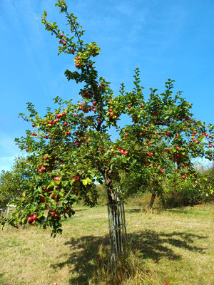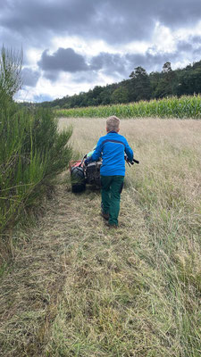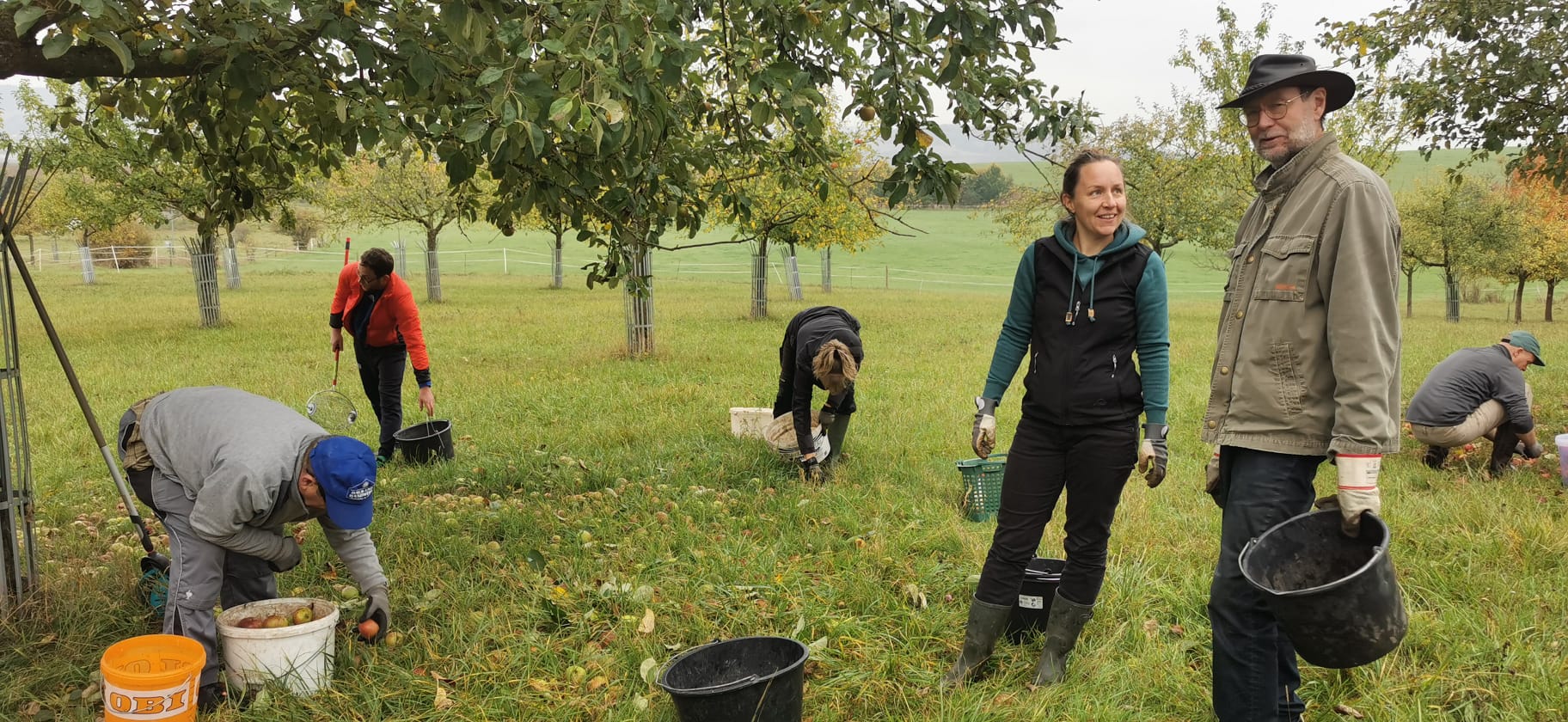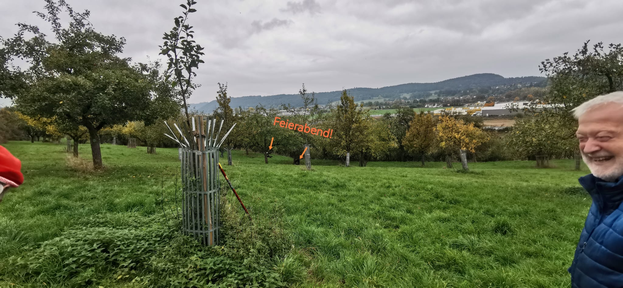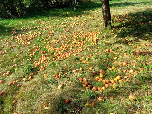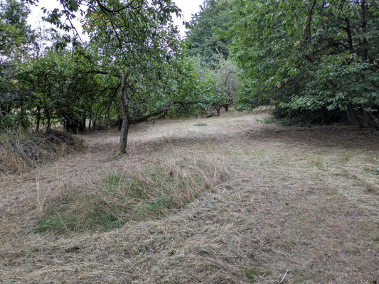 Wenn der Obstverstrich im September stattfinden wird, sollte die Wiese so weit abgefressen sein, dass sie gut begehbar ist.