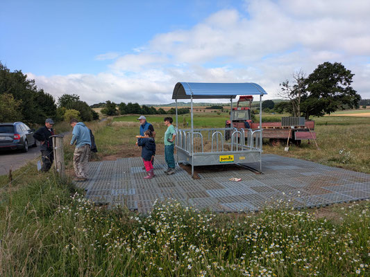 Bei der Vielzahl von Einsatzbereichen des Vereines und den damit verbundenen vielen Arbeitsstunden ist jede Vereinfachung und Erleichterung der Arbeitseinsätze sinnvoll. Die Rinderhalltung im Schutzgebiet Rodenbach ist so angelegt, dass die Tiere regelmäßig die Weide wechseln. Das bedeutete bisher auch das Umsetzen des beweglichen Viehunterstandes und der Heuraufe. Durch die Anschaffung des 2. Unterstandes und der 2. Heuraufe ist eine feste Stationierung möglich.
