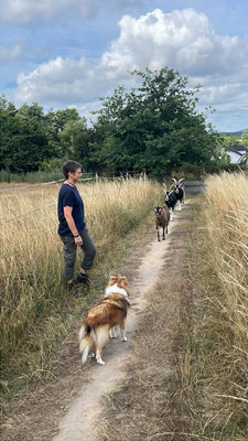Die alljährliche Wanderung der Ziegen zu den Damshäuser Teichen.