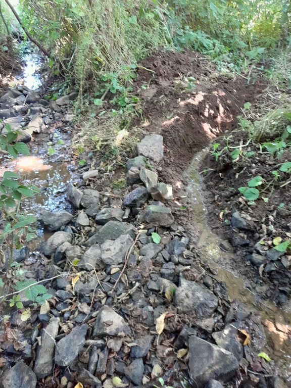 Jochen hat auf einen Hinweis der UNB hin den Bachlauf des Bringsfelder Graben wieder geteilt. So verteilt sich das Wasser in den "neuen" und "alten" Bachlauf.