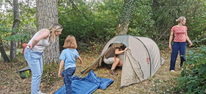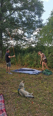 Platz zum Toben und für den Zeltaufbau geschaffen – die perfekte Grundlage für ein erlebnisreiches Wochenende. Für gute Laune und viele Streicheleinheiten sorgte außerdem Miro, Sonjas