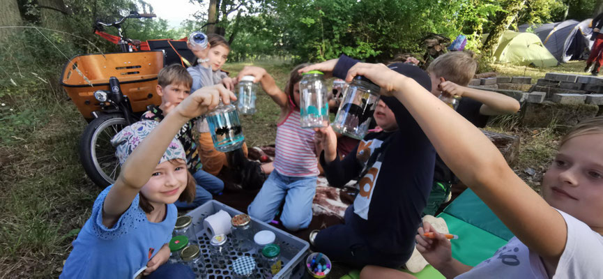 Als es dunkler wurde, begaben wir uns gemeinsam zum spannendsten Teil des Wochenendes: dem Netzfang. Zusammen mit den Kindern bauten wir die Netze auf und schon bald stellten sich erste Erfolge